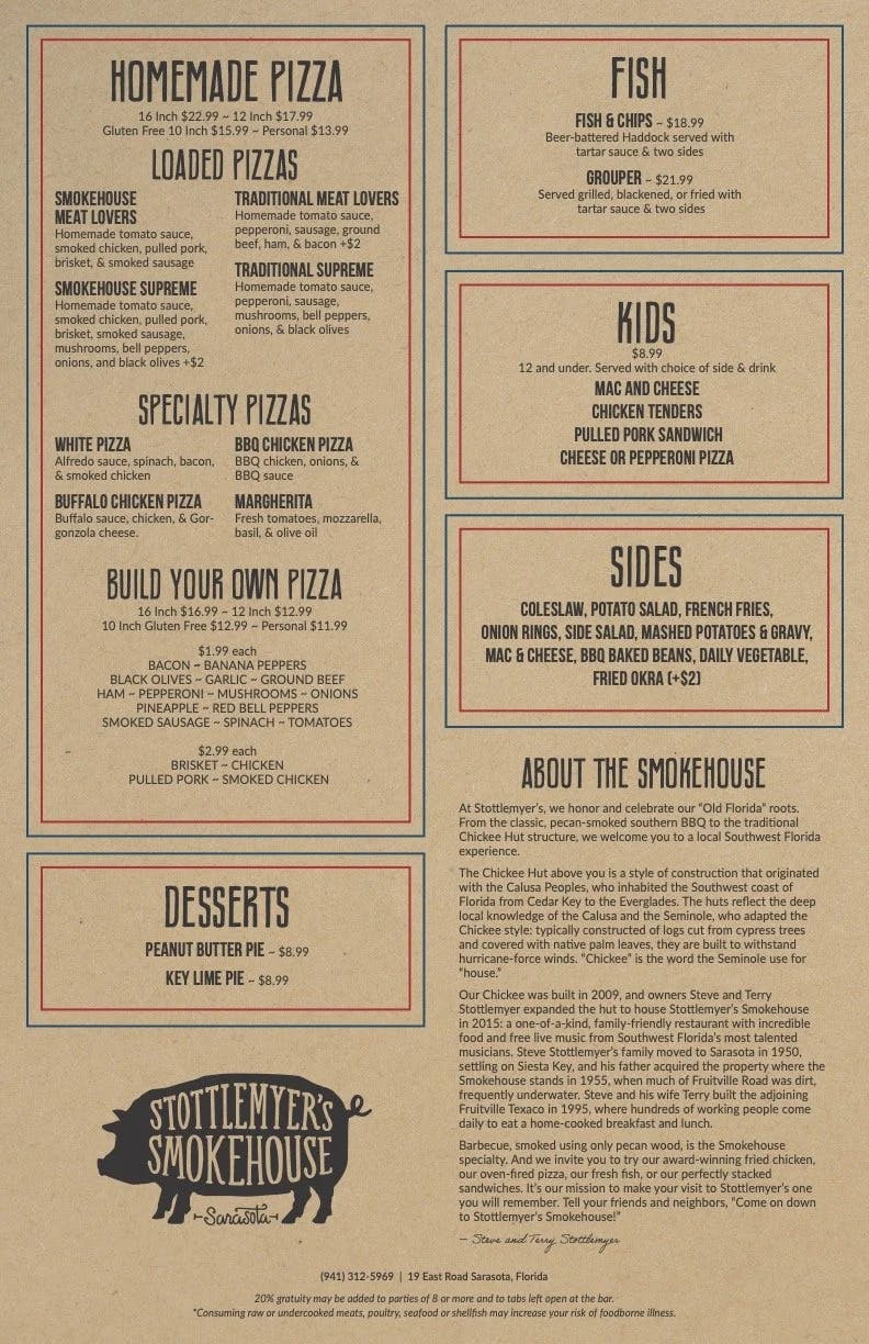 Homemade tomato sauce, smoked chicken, pulled pork, brisket & smoked sausage
